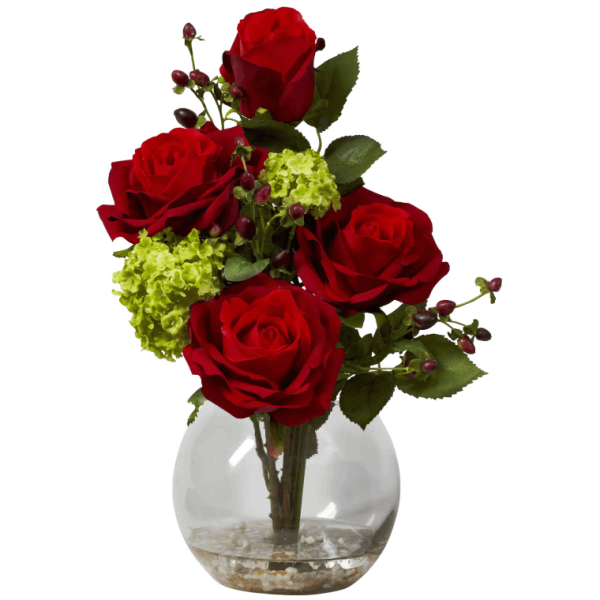 Rose and Hydrangea Silk Flower Arrangement, Red