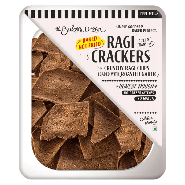 • Unique crunchy chips embodied with Ragi, we are loaded with garlic and are perfect with any dip that you may choose to have.