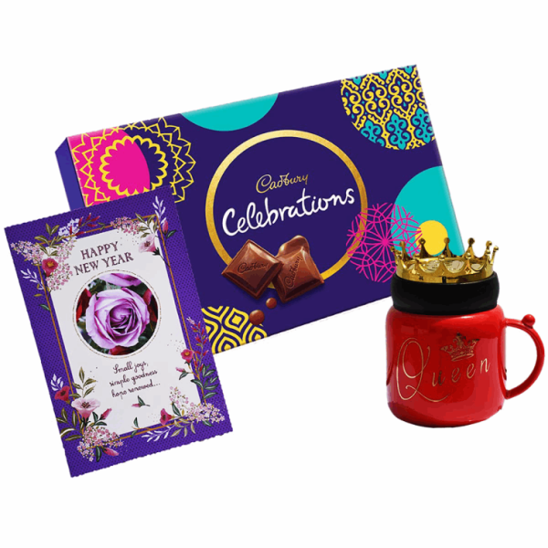 Sales Package: 1 New Year Greeting Card, 1 Ceramic Coffee Mug with Crown Lid and 1 Chocolate Celebration (Pack of 178 gm).